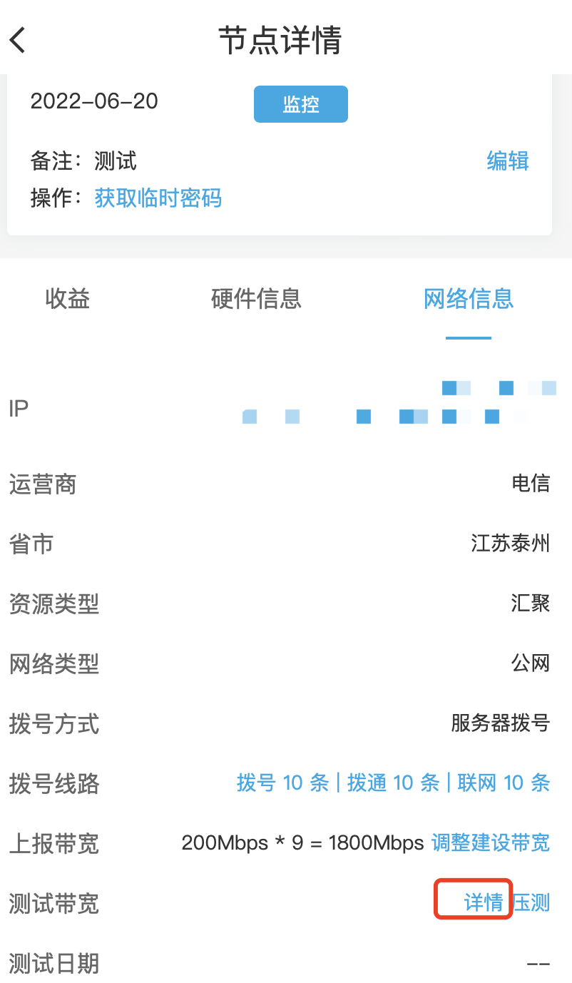 检测方法: 定期对线路进行压测, 可以在小程序节点详情查看具体压测数据